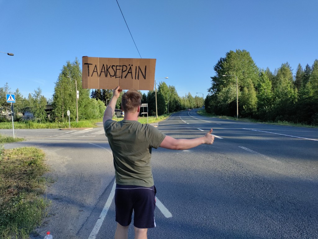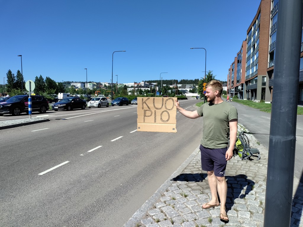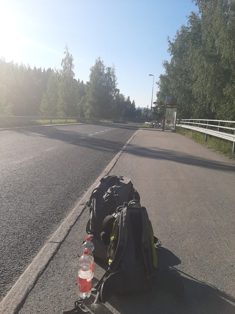 The new spot from the other side of the city turned out to be just as unpleasant – if not worse. In the end we were stuck for more than three hours in this Jyväskylä episode while trying to make our way forward. Maintaining a bright mind is crucial on a trip like ours, but the sun sure tried it’s best to melt our hype away. The heat was just infernal and there was no shade to hide in.