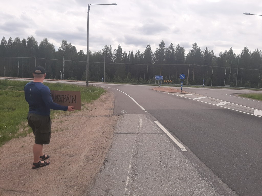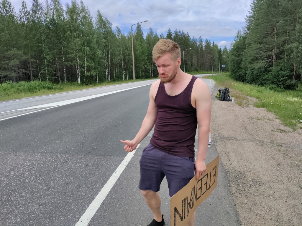After the first few hours, we knew we were in a hurry. If we wanted to make it all the way to Lapland, we’d need a direct ride. As we were sick from the burning sunlight, we decided to part and try on two roads. I was left at the original spot whereas Joona walked to the other main road to try and get a rescuing ride to Oulu instead.