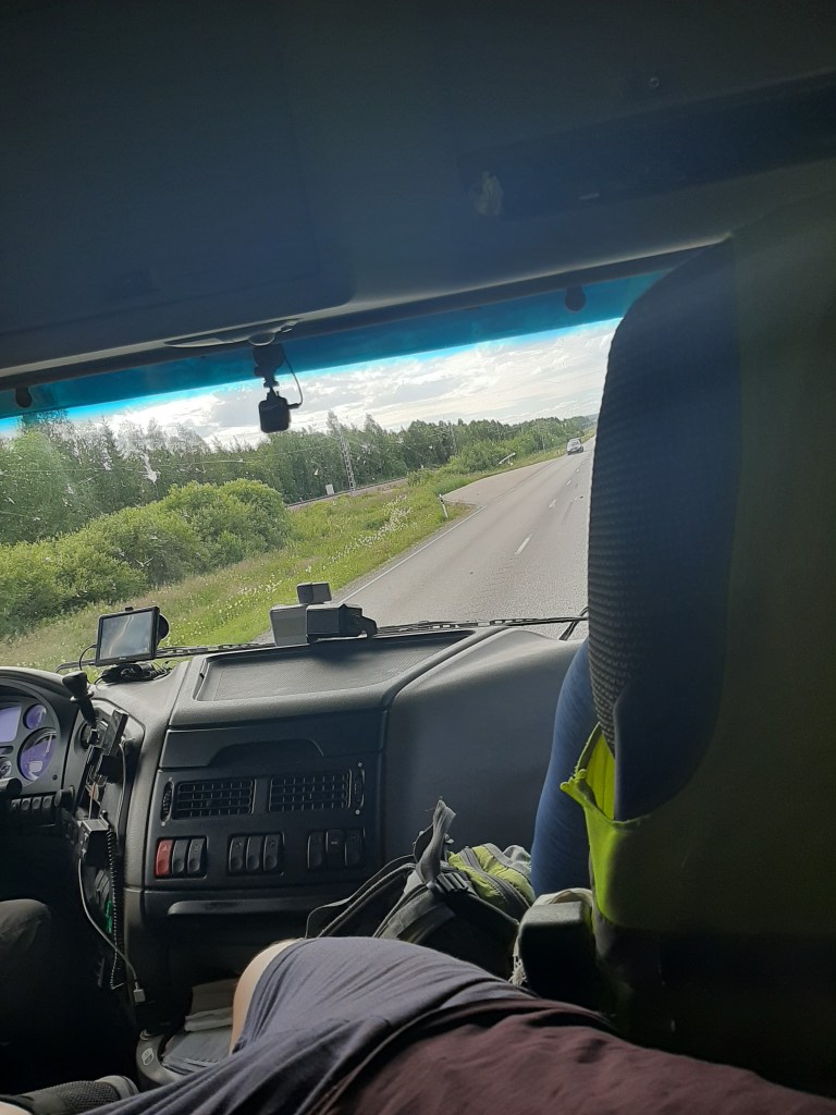 We unfortunately decided to skip Rovaniemi from our plans and both get on the Oulu road. Even if there was more traffic now in the afternoon, we didn’t encounter just as much smiles and hype from drivers as usually. I have no idea what the hell is wrong with the Kainuu people and for how long we would’ve been stuck if a Russian truck driver didn’t rescue us. Hopping in the truck and lying down on the bed in the cockpit felt just unbelievable.