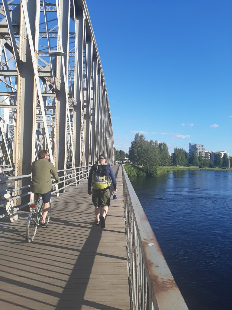 On the way to Oulu, Joona and our driver tried to communicate by making simple map drawings with a piece of paper and a pen. Even if it seemed like the driver understood where we wanted to hop off, he drove by the planned bus stop. When we expressed that we wanted to get off as soon as possible, he took a glance at the mirrors and stopped the truck right away – at the side of a highway junction. I believe you’d never see two guys and bags fly so fast out of a truck.